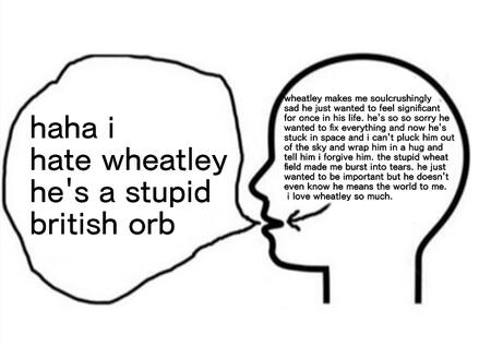 it's time to look like an insane person!!!!oh my god i love wheatley so much i go insane for him i have like a million portal aus and he's just like in my brain forever i guess. hi you stupid british orb. i love him so much. oh mygod. i love musical wheatley so much too (JD my beloved) anyway he's just living there. in my head. hi wheatley